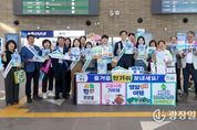 광장일보 주재영 기자 | 영암군은 1~2일 나주역에서 추석연휴 귀성객에게 ‘찾아가는 군정 홍보’를 진행했다. 이번 홍보는 영암군의 주요 시책, 향우·귀성객 참여제도 알림 등을 위해 마련됐다. 주요 홍보 내용은 ▲고향사랑 기부제 ▲영암여행 1+1 사업 ▲디지털 영암군민증 ▲온라인 영암몰 등이었다. 박영하 영암군 자치행정과장은 “찾아가는 홍보 활동으로 영암군 소식을 더 많은 이들에게 더 넓게 알릴 수 있었다. 이번 홍보가 관광·소비·주민참여에 기여할 것으로 기대한다”고 전했다.