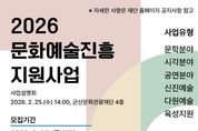 광장일보 주재영 기자 | 군산문화관광재단이 지역 예술 현장에 창작 활력을 불어넣기 위해 ‘2026년 문화예술진흥 지원사업’에 참여할 예술인과 예술단체를 공개 모집한다. 올해 재단은 지역 예술인들이 복잡한 행정절차에서 벗어나 창작 활동에 집중할 수 있도록 지원 제도를 대폭 개선했다. 과도한 지원 신청 서류를 간소화해 참여 문턱을 낮웠으며, 기존 사업계획서 제출 방식 대신 모바일 메신저처럼 간편하게 접수할 수 있는 ‘네이버폼 기반 간편 접수 시스템’을 도입해 접근성을 높였다. 또한 신진 예술인의 참여 확대를 위해 신설한 ‘신진예술’ 분야에 한해 ‘지출 증빙 간소화 제도’를 시범 운영, 현장의 실질적인 부담을 줄였다. 이와 함께 현장의 의견을 반영해 선정된 예술인과 단체에 대한 홍보를 강화하고, 우수 예술인(단체)을 발굴·선정하는 등 ‘예술인 중심’의 지원 체계를 더욱 공고히 할 방침이다. 이번 사업은 공고일 기준 1년 이상 군산시에 거주하거나 소재한 예술인과 단체를 대상으로 하며, 군산 지역에서 이뤄지는 다양한 문화예술 창작 활동을 지원하기 위해 총 2억 원 규모로 추진된다.