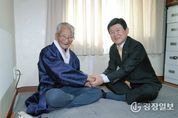 광장일보 주재영 기자 | 오영훈 제주특별자치도지사는 설 명절을 맞아 18일 도내 유일한 생존 독립유공자인 강태선 애국지사의 자택을 방문해 세배하고 새해 인사를 나눴다. 오영훈 지사는 “국가유공자들의 숭고한 희생과 헌신 위에 오늘의 제주가 있다”며 “새해에도 건강하시고, 제주가 우주·신산업 등 새로운 성장 기반을 차근차근 만들어 가는 모습으로 보답하겠다”고 말했다. 이어 “국가를 위해 헌신하신 분들이 일상 속에서 존중받을 수 있도록, 국가유공자 예우 강화를 도정의 중요한 책무로 삼아 끝까지 최선을 다하겠다”고 강조했다. 강태선 애국지사는 “새해에도 제주가 더 크게 발전하길 바란다”며 “도민을 위해 애써 달라”고 덕담을 전했다. 강태선 애국지사는 18세이던 1942년 일본으로 건너가 독립운동을 위한 모임을 조직하고 동지를 규합하다 일제에 체포돼 징역 2년 6월형을 선고받고 복역했다. 광복을 맞아 출옥한 뒤 공로를 인정받아 1982년 대통령 표창, 1990년 건국훈장 애족장을 서훈받았다. 1924년생인 강태선 애국지사는 올해 만 101세로, 현재 국내 생존 애국지사 4명 가운데 한 명이다.