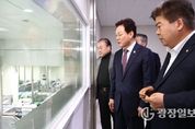 광장일보 주재영 기자 | 경상남도는 17일 김해시 주촌면에 위치한 축산물유통 거점인 부경축산물공판장을 방문해 아프리카돼지열병(ASF) 발생에 따른 축산물 수급 상황을 살피고, 현장 간담회를 통해 축산관계자들의 애로사항을 청취했다. 이날 현장에는 최근 도내 아프리카돼지열병(ASF) 발생으로 인한 소비자 불안을 해소하고, 유통 전 과정에서의 철저한 차단 방역실태를 확인하기 위해 마련됐다. 박완수 도지사는 “부경축산물공판장은 축산물의 생산부터 처리·가공, 유통에 이르기까지 우리나라를 대표하는 축산물 시설”이라며 “그동안 안전하고 신선한 축산물을 안정적으로 공급해 도민과 국민의 건강한 먹거리 제공에 크게 기여해 왔다”고 평가했다. 이어 “현장에서 애써온 조합장과 임직원 여러분의 노고에 감사드린다”고 말했다. 또 “최근 기후 변화와 수입 개방, 가축 질병 등으로 축산업을 둘러싼 여건이 매우 어려운 상황”이라며 “현장의 의견을 충분히 경청해 도정에 적극 반영하고, 경남 축산업과 유통 구조 발전을 위해 도에서도 지속적으로 노력하겠다”고 밝혔다. 박 지사는 이날 시설을 둘러보며 스마트 도축·가공 시스템 운영 상황