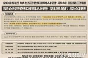 광장일보 주재영 기자 | “추석, 부산근현대역사관에서 가족과 함께 부산의 근현대사를 배우는 시간이 되어보세요!” 부산근현대역사관은 추석 연휴를 맞아 오는 10월 6일 오전 10시부터 오후 5시까지 시민참여 프로그램 '2025년 부산근현대역사관 퀴즈왕: 추석날편'을 운영한다고 밝혔다. 이번 프로그램은 역사관 본·별관과 전시를 관람하며 부산의 근현대사 퀴즈를 풀어보는 체험형 행사로, 역사관 관람객 누구나 참여할 수 있다. 퀴즈는 부산 근현대사의 흐름과 공간의 특성을 반영해 총 6개 영역으로 구성된다. ▲‘상설전시’ 영역에서는 개항과 근대 부산, 일제강점기와 독립운동, 피란수도 부산, 산업화와 민주화까지 부산의 역사를 한눈에 살펴본다. ▲‘본관·별관 탐방’ 영역에서는 건물과 공간이 지닌 역사적 의미를 직접 체험할 수 있다. ▲‘문화와 인물’ 영역에서는 부산 근현대사에 중요한 발자취를 남긴 인물들의 삶과 업적을 돌아본다. 누구나 무료로 참여할 수 있으며, 퀴즈의 정답을 모두 맞히면 선착순 500명에게 한국은행에서 제공하는 소정의 기념품을 제공한다. 참여방