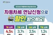 광장일보 주재영 기자 | 천안시는 다음 달 2일까지 자동차세 연납 신청을 받는다고 7일 밝혔다. 자동차세 연납제도는 매년 6월과 12월에 나누어 부과되는 자동차세를 1월에 한 번에 납부하면 연세액의 4.5%를 공제해주는 제도다. 연납 신청은 1월 외에도 3월, 6월, 9월에도 가능하며, 이 경우 공제율은 각각 연세액의 3.7%, 2.5%, 1.2%가 적용된다. 연납 후 차량 소유권 이전이나 폐차·말소 등 변동 시 남은 기간에 해당하는 자동차세를 환급받을 수 있다. 자동차세 연납 신청은 구청 세무과 및 읍면동 행정복지센터를 방문하거나 전화로 신청할 수 있으며, 위택스를 통한 전자 신청도 가능하다. 다만 지방세 자동이체를 신청했더라도 자동차세 연납은 자동 납부되지 않으므로 반드시 직접 납부해야 한다. 김미영 세정과장은 “자동차세 연납 제도는 세액공제 혜택과 함께 납세 편의를 높일 수 있는 제도”라며 “시민들께서는 연납 신청 기간을 놓치지 말고 기한 내 납부를 통해 절세 혜택을 받으시길 바란다”고 말했다.