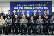 광장일보 주재영 기자 | 전라남도와 광주광역시는 12일 나주 전남연구원에서 제1호 광역통합 지방정부 출범을 향한 민관합동 실무기구인 광주·전남 행정통합 추진협의체 첫 회의를 열어 특별법과 시도민 의견수렴, 공론화 방안 등을 논의했다. 광주·전남 행정통합 추진협의체는 광주·전남 각계 대표 20명으로 구성됐다. 당연직 공동위원장으로 강위원 전남도 경제부지사와 김영문 광주시 경제문화부시장이, 민간 공동위원장으로 전남에선 조보훈 전 산업단지공단 부이사장, 광주에선 정영팔 광주지방시대위원장이 각각 맡기로 했다. 협의체 위원은 두 시·도의회, 시군구의회, 기초자치단체장, 경제·사회단체, 교육·문화계 대표 등 광주·전남에서 각각 8명씩 참여했다. 이날 회의에선 김영록 전남도지사와 강기정 광주시장, 시·도 협의체 위원 등 30여 명이 참석한 가운데 9일 청와대 오찬간담회 결과를 보고하고, 시·도민 의견수렴과 공론화 방안, 행정통합 특별법안 등을 논의했다. 전남도와 광주시는 지난 2일 ‘광주·전남 대부흥’의 새 역사를 열기 위한 대통합 공동선언을 발표하고, 행정 지원을 위한 추진기획단 구성·운영에 착수