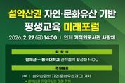 광장일보 이현나 기자 | 인제군과 동국대학교는 27일 오후 2시 인제 기적의도서관에서 관·학 협력 활성화를 위한 업무협약을 체결한다. 이번 협약은 2024년 10월 체결한 ‘평생학습 중심의 관·학 협력 업무협약’을 포괄·확대한 것으로, 협력 범위를 기존 평생교육 중심에서 설악권 역사·문화 자원 교육·활용과 평화경제 분야까지 확대한다. 협약 기간은 2년으로 명시하고 합의 시 연장이 가능하도록 한다. 기존 협약을 통해 양 기관은 ▲평생교육 프로그램 개발·운영 ▲평생교육 자료 제공 ▲관·학 협력 연계 추진 등을 중심으로 협력해 왔으며, 내설악 백담권역 교육문화 인프라 구축과 만해 아카데미 운영 등 평생교육 연구 및 프로그램 개발 사업을 공동 추진해왔다. 이를 바탕으로 이번 협약에는 ▲평생교육 중심의 관·학 상생협력 지속 ▲인문고전 및 설악권 역사·문화 자원 기반 교육·연구 활성화 ▲인제군 평화경제특구 지정·운영 협력 등이 포함된다. 특히 동국대학교의 학술 연구 역량을 바탕으로 인문고전 디지털화와 설악권 역사·문화 자원에 대한 공동 조사·연구를 추진하고, 이를 학술 및 교육 자원으로 활용하