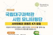 광장일보 주재영 기자 | 국립대구과학관(관장 이난희)은 시민의 시각에서 과학관 전시와 교육 프로그램, 관람 서비스를 체험하고 개선 의견을 제안하는 시민 참여 프로그램 ‘사이언트리 프렌즈 4기’를 모집한다. ‘사이언트리 프렌즈’는 시민이 직접 국립대구과학관 프로그램을 체험하고 모니터링 활동을 통해 다양한 의견을 제안하는 국립대구과학관 시민 참여 프로그램으로, 과학관 운영과 서비스 품질 향상을 위해 운영되고 있다. 이번 국립대구과학관 사이언트리 프렌즈 4기 모집은 3월 12일부터 3월 26일까지 진행되며, 대구·경북 지역 대학생 및 시민을 대상으로 15명 내외로 선발할 예정이다. 선발된 모니터링단은 2026년 4월부터 11월까지 약 8개월간 국립대구과학관 전시·교육·행사 등을 체험하며 관람 환경과 서비스에 대한 의견을 제시하는 활동을 수행하게 된다. 국립대구과학관 시민 모니터링단 ‘사이언트리 프렌즈 4기’ 활동참여자에게는 전시관 무료 관람(본인 및 동반 3인), 무료 주차 혜택이 제공되며, 활동 완료 시 수료증과 기념품이 지급된다. 또한 우수 활동자에게는 우수활동 표창이 수여될 예정이다.