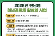 광장일보 주재영 기자 | 영광군은 청년들의 지역 활동 기반을 마련하고 지역사회 활동 주체로 성장할 수 있도록 지원하기 위해 오는 4월 27일까지 ‘2026년 전남형 청년공동체 활성화 사업’ 참여팀을 모집한다고 밝혔다. 이번 사업은 총 6개 팀을 선정해 팀별로 600만 원의 활동비를 지원하며, 발대식과 성과공유회, 네트워크 행사 등 다양한 교류 프로그램도 함께 운영될 예정이다. 신청 대상은 청년 5인 이상으로 구성된 팀·법인·단체이며, 모집 분야는 ▲지역연계 ▲일자리·창업 ▲문화·예술 ▲봉사활동 등 4개 분야다. 지역사회에 새로운 활력을 불어넣고 다양한 공동체 활동을 희망하는 청년이라면 누구나 참여할 수 있다. 참여를 희망하는 청년공동체는 영광군청 누리집에 게시된 공고문을 확인하여 관련 서류를 제출하면 되며, 자세한 사항은 영광군 인구교육정책실 청년지원팀으로 문의하면 된다. 영광군 관계자는 “지난해 전라남도 청년공동체 성과공유회 최우수상 수상을 통해 우리 군 청년들의 우수한 역량을 입증한 바 있다”며, “올해도 청년들의 창의적인 활동이 지역사회에 실질적인 변화와 활력을 가져올 수 있도록