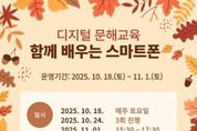 광장일보 이현나 기자 | 철원교육도서관은 지역 고령층의 디지털 활용 능력 향상과 격차 해소를 위해 오는 10월 18일부터 11월 1일까지 매주 토요일, 총 3회에 걸쳐 ‘함께 배우는 스마트폰’ 디지털 문해교육을 운영한다. 이번 강좌는 지역 내 60세 이상 주민을 대상으로 철원교육도서관 3교육실에서 매주 토요일 오후 3시 30분부터 5시 30분까지 진행된다. 주요 내용은 △스마트폰의 기본 조작 △사진 촬영 △앱 설치 등 실습 중심으로 구성되며, 일상생활 속 스마트폰 활용 능력을 높일 수 있도록 돕는다. 강좌는 10월 1일부터 15일까지 도서관 방문 또는 전화로 신청할 수 있으며, 선착순 10명을 모집한다. 김민서 관장은 “이번 강좌를 통해 어르신들이 디지털 사회에 적극 참여하고, 스마트 기기를 활용한 소통과 문화 활동으로 정서적 안정과 삶의 활력을 되찾길 기대한다.”라며 “어르신들의 자신감 회복과 사회적 고립 예방에도 도움이 될 것이다.”라고 말했다. 자세한 내용은 철원교육도서관 누리집을 참고하거나 철원교육도서관으로 문의하면 된다.