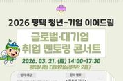 광장일보 박균현 기자 | 평택시는 기업 현직자들의 취업 멘토링을 통해 실질적인 취업 준비를 지원하고 인적 네트워크 형성 기회를 제공하기 위한 '평택 청년-기업 이어드림 ‘글로벌·대기업 취업 멘토링 콘서트’' 참여자를 오는 20일까지 모집한다고 밝혔다. 취업 멘토링 콘서트는 오는 3월 21일 평택시청 대회의실에서 평택 거주 또는 활동 중인 19세부터 39세까지의 구직 청년 100여 명을 대상으로 진행되며, 삼성·SK·LG·나이키·아마존·J&J·KT 등 13개 기업의 현직자들이 취업특강, 직무 토크쇼 질의응답(Q&A), 공개 모의 면접, 그룹 멘토링을 통해 실질적인 취업 정보 및 현실적인 조언과 경험을 제공할 예정이다. 참여 신청은 모집 포스터의 정보무늬(QR코드)를 통해 접수하면 된다. 기타 자세한 사항은 평택시청 누리집을 참고하거나 청년정책과로 문의하면 된다.