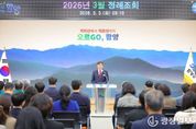 광장일보 주재영 기자 | 함양군은 3일 오전, 군청 대회의실에서 직원 120여 명이 참석한 가운데 2026년 3월 정례조회를 개최했다. 이번 정례조회는 표창 수여, 군수 훈시 및 직원 격려, 군민가 제창 순으로 진행됐다. 표창은 장관 표창(지방세외수입 발전 유공)과 도지사 표창(2025년 한우산업 발전 유공), 군수 표창(2026년 2월 이달의 공무원) 등 총 3건을 수여했다. 진병영 함양군수는 인사말을 통해 2026년 사업 추진과 내년도 국도비 확보 노력을 강조하면서 “주민들의 삶과 지역 발전에 큰 역할을 하는 공무원으로서 변화와 혁신을 지향하는 동시에 업무능력 향상에 최선을 다해 주길 바란다”라며 당부의 말을 전했다. 한편, 함양군은 건조한 기후와 강풍 등으로 산불 발생 위험이 커지는 시기를 맞아 안전의식 제고 및 산불 예방 문화 확산을 통해 소중한 산림자원을 보존하는데 모든 행정력을 집중할 예정이다.