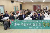 광장일보 주재영 기자 | 인천 중구의회는 지난 29일 율목동 커뮤니티센터에서 열린 '2025년 중구 주민자치협의회 송년회'에 참석했다. 이날 행사에는 이종호 의장, 손은비 운영총무위원장, 윤효화 예산결산특별위원장이 참석해 한 해 동안 지역사회 발전을 위해 헌신한 주민자치회장단과 사무국장 등 각 동 주민자치회 관계자들에게 감사와 격려의 뜻을 전했다. 이종호 의장은 "올 한 해 주민 가까이에서 지역 현안 해결과 주민자치 활성화를 위해 애써주신 모든 분께 깊이 감사드린다"며 "중구의회도 주민자치회가 지역 공동체의 중심 역할을 할 수 있도록 제도적 지원을 아끼지 않겠다"고 밝혔다. 한편, 중구의회는 앞으로도 주민자치협의회와 협력해 주민 중심의 지역 자치 활성화를 위해 노력한다는 계획이다.