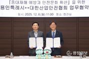 광장일보 주재영 기자 | 용인특례시는 8일 시청 4층 접견실에서 대한산업안전협회와 ‘중대재해 예방과 안전문화 확산을 위한 업무협약’을 맺었다. 이날 협약식에는 이상일 시장과 임무송 대한산업안전협회 회장, 주도종 기술이사, 강원석 경기지역본부장이 참석했다. 시와 협회는 ▲중대재해 예방을 위한 자문 ▲용인시 종사자 대상 안전교육과 재해예방 역량 강화 지원 ▲시민 안전을 위한 안전점검 지원 ▲건설안전과 시설 안전에 관한 자문 ▲안전문화 확산을 위한 공동 캠페인 등을 추진하기로 했다. 시는 협약을 계기로 고도화된 안전관리 체계를 구축하고, 공무원과 현장 종사자들의 안전 역량을 강화해 시민이 체감하는 안전 수준을 한층 더 높일 계획이다. 1964년 출범한 대한산업안전협회는 오랜 경험과 전문성을 기반으로 안전진단, 인증, 교육 등 안전관리 분야에서 핵심적인 역할을 하는 종합컨설팅기관이다. 임무송 회장은 “삼성과 SK를 중심으로 용인특례시가 대한민국의 반도체 중심 도시로 도약하는 데 이상일 시장님이 큰 역할을 하신 것으로 안다”며 “용인이 다른 지역의 모범이 되는 안전의 새로운 모델(표준)로 자리