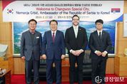 광장일보 주재영 기자 | 창원특례시는 27일 오전 시청 접견실에서 장금용 창원시장 권한대행이 네마냐 그르비치(Nemanja GRBIĆ) 주한 세르비아 대사를 접견하고, 양국 지방정부 간 교류·협력 방안을 논의했다고 밝혔다. 이번 접견은 창원시와 세르비아 간 상호 이해를 증진하고 향후 실질적인 교류 의제를 발굴하기 위해 주한 세르비아 대사관의 요청으로 마련된 첫 공식 만남이다. 이날 네마냐 그르비치 대사는 창원의 우수한 기술력과 산업 기반에 깊은 관심을 표명했다. 특히 '세르비아가 추진 중인 친환경 에너지 정책 속에서 창원의 기술은 매우 중요한 역할을 할 수 있을 것'이라며 적극적인 협력 의지를 전했다. 이에 장금용 창원특례시장 권한대행은 "창원은 기계, 방산, 원전 등 대한민국 제조업을 견인하는 핵심 산업도시로, 세르비아와의 협력 잠재력이 매우 크다"고 강조했다. 이어서 “이번 방문이 창원과 세르비아 간의 우호 관계를 공고히 하고 미래지향적 파트너십을 구축하는 계기가 되길 바란다"며, “앞으로도 지속적인 소통을 통해 다양한 분야에서 협력 성과가 도출될 수 있도록 노력하겠다”고 밝혔다. 또한 창원시가