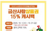 광장일보 주재영 기자 | 금산군은 지역 상권에 활기를 불어넣기 위해 9월부터 적용한 금산사랑상품권 캐시백 적립률 15%를 10월에도 유지한다. 상품권 15% 캐시백 유지는 주민 호응과 정부의 지역사랑상품권 정책 기조를 반영해 추진하며 민족 최대 명절인 추석을 맞아 명절 선물 구입 및 제수용품을 해야 하는 주민들의 부담을 줄일 것으로 예상된다. 금산사랑상품권은 스마트폰 앱 지역상품권 착(chak)을 통해 상품권을 구매한 뒤 가맹점에서 결제하면 되며 지역 음식점·병원·학원·미용실 등 약 2900개 가맹점에서 사용할 수 있다. 캐시백 적립은 종이 상품권은 적용되지 않고 모바일·카드 상품권에서만 이뤄진다. 군 관계자는 “금산사랑상품권 캐시백 적립은 소비만 해도 혜택을 받을 수 있다”며 “지역 경제 활성화에도 도움이 되는 상품권을 많이 이용해 주시길 바란다”고 말했다.