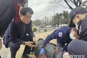 군포시= 주재영 기자 | 하은호 군포시장이 출장 중 길에 쓰러진 할머니를 발견하고 신속한 신고와 응급조치로 무사히 귀가를 도와 훈훈한 미담이 되고 있다. 하 시장은 27일 오전 10시께 관내 출장길에 나섰다가 산본중앙공원 사거리 인근 KT 옆 공원에서 한 할머니가 쓰러져 있는 것을 발견했다. 이를 본 하 시장과 일행은 즉시 차량에서 내려 119에 신고한 뒤, 할머니를 편안한 자세로 눕히고 의식을 잃지 않도록 말을 건네며 상태를 살폈다. 신고를 받고 출동한 119구조대는 현장에서 할머니의 의식을 유지하도록 주의하며 응급조치를 실시했다. 이후 할머니의 상태가 호전되면서 병원 이송 없이 구급차를 통해 안전하게 귀가한 것으로 전해졌다. 하 시장은 평소에도 재난 및 응급 구조 현장과 인연이 깊은 것으로 알려졌다. 고등학생 시절 안양 일대에 큰 홍수가 발생했을 당시 대림대학교 앞에서 버스 안으로 물이 차오르는 긴박한 상황 속에서 시민 구조를 도운 경험이 있다. 또한 2022년에는 산본역 인근 피트인 사거리에서 횡단보도 옆에 쓰러진 노인을 발견해 신속한 신고와 조치로 무사 귀환을 도운 바 있다. 하 시장은 “해빙기 사고 예방을 위해 직원들과 회의를 마치고 나오는 길이었다