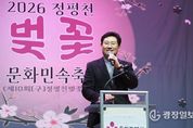 광장일보 주재영 기자 | 용인특례시는 수지구 풍덕천2동의 대표 축제인 ‘정평천 벚꽃 문화민속축제’가 10일 저녁 풍덕천2동 행정복지센터 주차장과 정평천 일원에서 열렸다고 11일 밝혔다. 정평천은 수지구 신봉동에서 발원해 풍덕천동으로 흐르는 하천으로, 매년 봄이면 천변에 벚꽃이 만개해 시민들이 즐겨 찾는 명소다. 정평천 벚꽃 문화민속축제 추진위원회가 주최한 이번 행사에는 이상일 시장을 비롯해 주민 1000여 명이 참여했다. 행사는 식전공연을 시작으로 개회식, 축하공연, 점등식 등으로 이어졌으며, 시민들은 정평천 산책로를 따라 벚꽃 야경을 감상하며 봄의 정취를 즐겼다. 행사장에는 다양한 공연·체험 프로그램이 마련돼 축제장을 찾은 시민들에게 즐거움을 선사했다. 이상일 시장은 축사에서 “정평천을 따라 핀 아름다운 벚꽃이 봄의 정취를 깊게 한다”며 “정평천의 벚꽃은 저절로 생겨난 것이 아니라 풍덕천2동 주민들을 비롯한 많은 분들의 정성스레 가꿔왔기 때문에 아름답고 소중한 만큼 오늘 벚꽃과 공연을 감상하시면서 따뜻한 마음을 나누시기 바란다”고 말했다. 이 시장은 “올해로 10회를 맞은