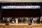 광장일보 주재영 기자 | 양주시가 최근 ‘제46회 장애인의 날’을 기념해 장애인에 대한 사회적 인식을 개선하고 소통과 화합을 도모하기 위한 기념행사를 개최했다. 이번 행사는 “당연한 일상, 모두가 누릴 수 있도록”을 주제로 장애인이 우리 사회의 구성원으로서 차별 없이 일상을 누릴 수 있는 사회를 함께 만들어 가자는 의미를 담아 마련됐다. 1부 기념식에서는 장애인 인권 헌장 낭독을 시작으로, 장애를 극복하고 자립의 귀감이 된 장애인 당사자와 장애인 복지 증진과 권익 향상에 기여한 유공자에 대한 표창 수여식이 진행됐다. 식전 및 2부 축하공연에서는 장애인과 비장애인이 예술을 통해 함께 어우러지는 무대가 펼쳐졌다. 특히 자폐성 장애를 가진 임동건 드러머의 드럼 공연은 현장 참석자들의 큰 호응을 얻었다. 양주시 관계자는 “장애인에게 평범한 일상이 특별한 목표가 아닌 당연한 권리가 되어야 한다”며 “앞으로도 장애인이 차별 없이 일상을 누릴 수 있도록 맞춤형 복지정책과 지원을 지속적으로 추진하겠다”고 말했다.
