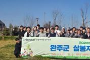 광장일보 주재영 기자 | 완주군 봉동읍에 위치한 한솔케미칼 전주공장과 LH삼봉사회복지관이 제81회 식목일을 맞아 완주군 삼봉지구 감돌숲공원에서 ‘수국 정원 조성 행사’를 열고 지역사회를 위한 환경 가꾸기에 나섰다. 최근 열린 행사는 완주군 산림녹지과와의 협력을 통해 추진했으며, 지역 주민들에게 자연 친화적인 생활환경의 가치를 알리고 지속 가능한 환경 보호 실천을 확산하고자 마련했다. 특히 한솔케미칼 전주공장이 후원한 약 400만 원 상당의 수국나무 500주는 임직원들이 직접 참여한 자원봉사 활동을 통해 식재되어 그 의미를 더했다. 완주군 삼봉지구 감돌숲공원에 뿌리 내린 수국나무는 여름철 화려한 꽃을 통해 공원의 경관을 한층 풍성하게 만들고, 주민들에게 쾌적한 휴식 공간을 제공할 것으로 기대를 모으고 있다. 김용두 한솔케미칼 공장장은 “기업의 사회적 책임을 실천하는 환경·사회·투명 경영(ESG 경영)의 일환으로 이번 활동을 추진하게 됐다”며 “삼봉지구 주민들이 이용하는 공원에 수국정원이 조성되어 지역에 활력을 더하길 기대한다”고 밝혔다. 임평화 LH삼봉사회복관장은 “지역사회와 함께 자연을