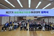 광장일보 주재영 기자 | 바르게살기운동 인천 서구협의회는 9월 27일 서구청 대회의실에서 ‘제27기 바르게살기운동 서구여성대학 입학식’을 개최했다. 이날 행사에는 송승환 서구의회 의장을 비롯해 바르게살기 운동 군‧구협의회 회장, 서구협의회 임원 및 회원, 그리고 입학생 180여 명이 참석해 성황을 이뤘다. 제27기 여성대학은 인천 서구 관내 주부들을 대상으로 11월 20일 수료식까지 매주 목요일 가좌동 나은병원에서 진행되며, 여성들의 역량 강화와 지역사회 발전을 위한 배움의 장으로 운영된다. 여성대학은 바르게살기운동의 3대 이념인 ‘진실, 질서, 화합’을 교육이념으로 삼고, 다양한 강의와 프로그램을 통해 학생들이 자신감을 키우고, 서로를 격려하며 새로운 시각으로 세상을 바라볼 수 있도록 돕는다. 바르게살기운동 인천서구협의회는 “지역사회에 관심을 가지고 봉사에도 적극 참여하며, 행복한 가정과 더불어 잘사는 서구 발전에도 큰 힘이 되어 주시기를 기대한다”라며 “입학생 모두가 건강하고 즐겁게 배우는 시간이 되기를 바란다”라고 전했다.