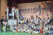 광장일보 이현나 기자 | 강릉농악보존회가 9월 28일 충북 영동군에서 열린 ‘제66회 한국민속예술제’ 청소년부 경연대회에서 강원특별자치도 대표로 출전하여 대상인 대통령상 수상의 영예를 안았다. 이번 경연에는 강릉시 관내 초중고교 학생 44명(초 34명, 중 9명, 고 2명)이 출연했으며, 경연장에 학부모 응원단 및 보존회 회원의 뜨거운 응원으로 예술제에 열기를 더했다. 학생들은 지난 7월부터 약 두 달여 간 무더위와 가뭄이라는 강릉의 어려운 상황 속에서도 굵은 땀방울을 흘리며 꾸준히 연습하며 경연을 준비했고, 그 결과 1위를 차지하여 대통령상 수상이라는 값진 성과를 거두었다. 이날 경연에서는 강릉농악의 대표적인 “농사풀이농악”을 선보였다. 이 농악은 과거 농사과정을 몸짓, 손짓으로 표현한 것이 가장 큰 특징으로 소, 볏짚 등 농사 과정의 다양한 소재들을 직접 몸으로 표현하여 하나의 연극이나 마임을 보는듯한 재미를 느낄 수 있다. 이번 경연은 임영민속연구회의 김남일 박사가 총 연출을 맡고, 이용신 전 서울노원구립예술단장이 고증을 담당해 완성도를 높였다. 한편, 올해 한국민속예술제는 문화체육관광부와 충
