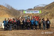 광장일보 이현나 기자 | 충북 괴산군은 제81회 식목일을 맞아 2일 문광면 광덕리 일원에서 나무 심기 행사를 진행했다. 이날 행사에는 이수현 부군수, 군의회 의장, 도의원, 농협중앙회 괴산군지부, 괴산증평산림조합 등 유관 기관 및 민간사회단체 관계자와 공무원 등 100여 명이 참석했다. 행사는 개식 선언과 국민의례를 시작으로 식재 요령 안내, 본 행사(나무 심기) 순으로 진행됐다. 참석자들은 전문가의 안내에 따라 3.7ha 면적에 낙엽송 1만 1,000본을 심었다. 군은 전체 면적 76%가 산림으로 이루어진 지역 특성에 맞춰 친환경적이고 지속 가능한 산림 경영에 힘쓰고 있다. 앞서 녹지 공간 확충과 군민의 자발적인 산림 녹화 참여를 독려하기 위해 묘목 7,900본을 배부하는 '나무 나누어주기' 행사도 열었다. 나아가 기후변화에 발맞춘 탄소중립 기반을 다지고 국산 목재 수요에 대응하기 위해 대규모 조림 사업에 속도를 낸다. 올해 총 18억 원을 투입해 254ha 규모에 약 51만 본을 식재할 예정이다. 이수현 부군수는 "산림은 유일한 탄소 흡수원이자