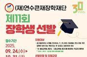 광장일보 주재영 기자 | (재)연수큰재장학재단은 미래 지역사회를 이끌어 갈 우수 인재 발굴과 양성을 위해 제11회 장학생을 선발한다. 이번 장학생은 ▲복지, ▲특기(개인), ▲특기(단체), ▲연수꿈응원, ▲학업우수, ▲연수큰재(다년간) 등 총 6개 분야에서 지원자를 모집하며, 지원 규모는 약 1억 8천만 원에 달한다. 특히 올해는 장학생 지원 기준을 개선하고 추천권자를 조정하는 등 예년에 비해 보다 폭넓은 학생들에게 기회를 제공하는 방향으로 개편됐다. 선발 절차는 ▲공고 및 접수(9월 24일~10월 31일), ▲서류심사, ▲연수큰재(다년간) 면접 심사 및 선발 심의위원회 심의, ▲재단 이사회 최종 확정 순으로 진행된다. 선발 결과는 11월 말에 발표할 예정으로 자세한 사항은 연수구청 누리집 공고문을 통해 확인할 수 있다. 이재호 연수구청장은 “연수큰재장학재단은 미래 꿈나무들이 자신의 꿈을 마음껏 펼칠 수 있도록 지원하고 있다.”라며 “앞으로도 내실 있는 다양한 장학사업을 통해 교육 기회의 균등과 인재 양성에 최선을 다하겠다.”라고 말했다.