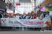 광장일보 주재영 기자 | 천안시의회는 민족 대명절인 추석을 앞두고 10월 2일 중앙시장을 찾아 시민과 상인들에게 따뜻한 인사를 전하며 명절 분위기를 함께 나누었다. 이번 방문은 경기 침체와 물가 상승으로 어려움을 겪고 있는 전통시장 상인들과 시민들의 노고를 살피고, 격려하며 명절의 정을 나누기 위해 김태흠 충남도지사와 김석필 천안시장 권한대행과 함께 하는 자리로 마련됐다. 김행금 의장을 비롯 △이종만 복지문화위원장, △강성기 경제산업위원장, △정도희 의원, △권오중 의원 등은 전통시장을 돌며 상인들의 애로사항을 청취하고, 제수용품을 직접 구매하며 전통시장 활성화에 동참했다. 특히 지역 상권을 살리고 서민 경제에 활력을 불어넣기 위해 ‘전통시장 이용’의 중요성을 강조했다. 김행금 의장은 “전통시장은 지역 공동체의 뿌리이자 시민과 함께하는 생활 공간”이라며 “추석 명절을 맞아 시민 모두가 따뜻하고 넉넉한 정을 나누고, 전통시장이 활기를 되찾을 수 있도록 의회 차원에서도 지속적으로 관심과 지원을 이어가겠다”고 말했다. 천안시의회는 앞으로도 민생 현장을 지속적으로 찾아 시민 목소리에 귀 기울이고, 지역경제