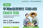 광장일보 주재영 기자 | 금산군은 농업의 미래를 이끌 전문 농업인을 육성하기 위해 2026년도 후계농업경영인 신청을 오는 2월 11일까지 접수한다. 지원 대상은 사업 시행연도 기준 18세 이상 49세 이하(1976~2008년 출생자)로 영농에 종사한 경력이 없거나 영농경력 10년 미만인 농업인이다. 후계농업경영인으로 선정될 경우 후계농업경영인 육성자금을 통해 세대당 최대 5억 원의 정책자금을 지원받을 수 있다. 해당 자금은 연 1.5%의 저금리에 5년 거치 후 20년간 원금 균등분할 상환 조건으로 제공된다. 단, 육성자금은 후계농업경영인으로 선정된 이후 상하반기에 별도로 실시되는 자금 배정 평가를 통해 최종 선정된 경우에만 지원되며 영농계획의 타당성과 경영 능력 등을 종합적으로 평가한다. 신청은 농림사업정보시스템 ‘농업e지’ 누리집을 통해 온라인으로 하면 하며 영농계획서 등 관련 서류를 기한 내 제출해야 한다. 금산군 후계농업경영인 신청에 관한 자세한 내용은 금산군청 농정과 농정유통팀에 문의하면 된다. 군 관계자는 “후계농업경영인 육성사업은 청년 및 후계 농업인