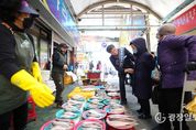 광장일보 주재영 기자 | 구미시는 12일 선산봉황시장에서 설 명절을 앞두고 전통시장 이용 촉진을 위한 설맞이 장보기 행사를 진행했다. 이번 행사는 명절 수요가 집중되는 시기에 전통시장 소비를 유도하고 지역 상권에 활력을 불어넣기 위해 마련됐다. 행사에는 김장호 구미시장을 비롯해 선산봉황시장 상인회, iM뱅크(대구은행) 구미영업부, 농협은행 구미시지부, 구미시여성단체협의회, 선산읍 기관·단체장과 관계 공무원 등 70여 명이 참여했다. 참가자들은 시장 곳곳을 돌며 명절 제수용품과 생활필수품을 직접 구매하고, 온누리상품권 이용을 안내했다. 현장에서는 상인들의 애로사항과 건의도 청취했다. 금융기관과 지역 단체가 함께 참여한 민·관 협력 방식은 전통시장 활성화에 대한 공동의 책임과 실천 의지를 확인하는 계기가 됐다. 김장호 시장은 “이번 장보기 행사가 전통시장 이용 분위기 확산으로 이어지길 기대한다”며 “시민들도 설 명절 준비를 전통시장과 골목상권에서 함께해 주시길 바란다”고 말했다.