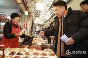 광장일보 주재영 기자 | 설 명절을 앞둔 12일 오전, 오영훈 제주특별자치도지사가 제수용품을 사려는 도민들로 붐비는 제주시 민속오일시장을 찾았다. 장바구니를 든 도민들 사이를 걸으며 명절 물가와 제수용품 수급 상황을 살폈다. 오영훈 지사는 화훼부와 할머니장터, 양품부 등 시장 구석구석을 돌며 가격 동향을 확인하고 상인들의 애로사항을 들었다. 오영훈 지사는 제주 지역화폐 ‘탐나는전’으로 농수산물과 제수용품을 직접 구매하며 장을 보러 나온 도민과 설 인사를 나누고 상인들에게 덕담을 건네기도 했다. 이날 구입한 물품은 도내 아동복지시설인 제주보육원에 전달해 입소 아동 51명이 따뜻한 설 명절을 보낼 수 있도록 지원할 예정이다. 시장 순회를 마친 뒤 시장 내 식당에서 박근형 상인회장 등 임원진과 오찬 간담회를 갖고 시장 시설 현대화와 주차 환경 개선 등 주요 현안을 논의했다. 상인회 측은 숙원인 장옥·비장옥 정비 사업의 조속한 추진과 주차장 유료화 시범 운영에 따른 이용객 편의 개선 등의 의견을 전달했다. 오영훈 지사는 “전통시장은 서민경제의 뿌리이자 지역 공동체의 중심”이라며