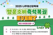 광장일보 주재영 기자 | 전라남도 나주시가 ‘2025 나주영산강축제’를 찾는 시민과 관광객들에게 특별한 즐거움과 함께 지역 상권 활력을 불어넣기 위해 ‘행운 소비 즉석 복권 이벤트’를 진행한다. 나주시(시장 윤병태)는 오는 10월 8일부터 12일까지 열리는 영산강축제에서 축제 방문객들이 지역 상권에서 소비하면 즉석 복권을 통해 나주사랑상품권을 받을 수 있는 이벤트를 마련했다고 1일 밝혔다. 이번 이벤트는 경기침체로 어려움을 겪고 있는 소상공인의 경영 안정과 골목상권 활성화를 위해 기획했다. 축제 기간 나주시 5개 권역(빛가람동, 남평읍, 영산포, 읍성권, 그 외 읍면동)에서 합산 5만 원 이상 소비한 방문객이면 누구나 참여할 수 있으며 축제장 내 소비 영수증은 제외된다. 소비 권역이 많을수록 당첨 규모가 증가하며 1개 권역에서 5만 원 이상 소비 시 30만 원짜리 즉석 복권, 2개 권역에서 소비 시 최고 50만 원짜리 즉석 복권, 그리고 3개 권역 이상에서 소비 시 최고 100만 원짜리 즉석 복권을 받는 방식이다. 참여자는 소비 영수증을 축제장 내 운영 부스에 제출하면 권역 수에 따른