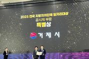 광장일보 주재영 기자 | 거제시는 지난 9월 30일 청주 오스코컨벤션센터에서 열린 ‘2025 전국지방치단체 일자리대상’ 시상식에서 일자리 공시제 부문 특별상(장관상)을 수상했다고 밝혔다. 2025년 일자리대상은 고용노동부가 전국 지방자치단체를 대상으로 지난해 일자리 목표와 추진 실적을 종합적으로 평가해 우수한 자치단체를 선정 시상하는 행사이다. 거제시는 지난 몇 년간 지역 산업 특성에 맞춘 맞춤형 일자리 정책을 지속적으로 추진하며 청년·여성·중장년층 등 다양한 계층의 고용확대에 기여한 점을 높이 평가받았다. 또한, 주력산업인 조선업 기업과 협력 네트워크를 통해 고용 및 노동자 지원 등의 사업을 운영하고 일자리 질 개선에도 힘써왔다. 옥치덕 경제해양국장은 이날 수상식에 참석해 “앞으로도 우리 거제시는 일자리 정책을 단순한 취업지원 차원을 넘어, 지역사회 전반의 지속가능한 성장전략과 연계하여 시민들이 정주하고 일자리가 보금자리가 되는 양질의 일자리 정책을 펼쳐나가겠다”고 밝혔다.