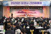 광장일보 주재영 기자 | 문경문화원은 1월 5일 문경실내체육관에서 기관·단체장 등 400여 명이 참석한 가운데 ‘2026 문경시 신년하례회’를 개최했다. 신년하례회는 매년 새해를 맞아 관내 기관·단체장이 한자리에 모여 문경시 발전과 시민의 안녕을 기원하는 행사로, 올해는 역동적인 에너지를 상징하는 병오년(丙午年), ‘붉은 말’의 해를 맞아 문경시가 힘차게 도약하는 한 해가 되기를 소망하는 의미를 담아 마련됐다. 이번 행사는 홍보대사 위촉식을 시작으로 상견례, 신년사, 축하떡 커팅, 떡국 나눔 순으로 진행됐다. 특히 이날 ‘미스터트롯2 진(眞)’ 가수 안성훈 씨를 문경시 홍보대사로 위촉해 문경의 매력과 가치를 전국에 널리 알리는 데 협력하기로 했으며 위촉식 이후 축하공연이 이어져 참석자들에게 감동을 선사했다. 행사를 풍성하게 장식한 문화공연은 가은초 채지산 양이 식전 공연으로 막을 올렸으며, 시립청소년무용단과 시립합창단 공연이 펼쳐졌고 마지막으로 제3회 문경트롯가요제 인기상 수상자이자 2025년 전국노래자랑 연말 결산 우수상을 받은 장혜진 양이 무대에 올라 새해 분위기를 한층 고조시켰다.