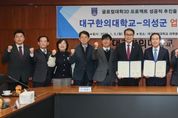 광장일보 주재영 기자 | 의성군은 1월 5일 대구한의대학교 대학본부 회의실에서 대구한의대학교(총장 변창훈)와 교육부 주관‘글로컬 대학 30’ 프로젝트 추진 및 상생 발전을 위한 업무협약(MOU)을 체결했다. 이번 협약은 대학과 지역의 동반 성장을 목표로 하는 ‘글로컬 대학 30’ 지정을 위해 지자체와 대학 간 협력체계를 구축하고, 의성군의 바이오 산업과 대학의 역량을 결합한 지역 맞춤형 인재 육성 모델을 만들기 위해 마련됐다. 양 기관은 이번 협약을 통해 K-MEDI 산업과 연계한 의성 세포배양 산업 맞춤형 인재 양성을 최우선 과제로 삼고, 이를 뒷받침할 현장 중심의 로컬 캠퍼스를 의성에 구축하기로 했다. 또한, 창업 생태계 조성과 공동 연구개발(R&D) 과제 발굴을 통해 지역 기업의 기술 경쟁력을 강화하는 한편, 지역 정주형 유학생 유치와 정주 여건 개선에 협력해 인구 소멸 위기에 공동 대응할 방침이다. 특히 의성군의 K-MEDI 관련 제품들이 글로벌 시장으로 진출할 수 있도록 기업 지원과 판로 개척에 양 기관의 인적·물적 자원을 총동원하는 등 포괄적인 상생 협력 체계를 가동할 계획이다. &nbs