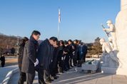광장일보 주재영 기자 | 영주시의회는 1월 2일 2026년 병오년 새해를 맞아 의원 전원이 충혼탑을 찾아 참배하며 새해 의정활동의 첫 발걸음을 내디뎠다. 시의원들은 헌화와 분향을 통해 순국선열과 호국영령의 뜻을 기리고, 지난 한 해의 의정 성과와 과제를 되새기며 시민 삶의 질 향상과 권익 보호, 지역 발전을 위한 책임 있는 의정 운영을 다짐했다. 김병기 의장은 “붉은 말의 해를 맞아 시민 여러분과 함께 힘차게 달리며 영주의 미래를 위한 도약을 준비하겠다”며 “현장 중심의 의정으로 시민이 체감하는 변화를 만들고, 영주의 미래를 함께 그려가는 의회가 되겠다”고 말했다. 영주시의회는 앞으로도 집행부에 대한 합리적 견제와 면밀한 점검을 이어가는 한편, 지역 현안과 주요 정책은 긴밀한 협의와 소통을 바탕으로 추진해 실행력을 높일 계획이다. 아울러 영주시의회는 2월 중 첫 임시회를 열어 연간 의사일정을 본격 가동하고, 임시회 7회와 정례회 2회 등 총 9차례 회기를 통해 시민 요구를 정책과 제도로 연결하는 의정활동을 펼칠 예정이다.