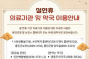 광장일보 주재영 기자 | 옹진군은 설 연휴 기간인 2월 14일부터 2월 18일까지 5일간, 의료공백을 최소화하고 응급환자 발생에 신속히 대응하기 위해 '설 연휴 응급진료체계'를 운영한다고 밝혔다. 군은 연휴 기간 중 보건소 내 ‘응급진료상황실’을 설치·운영하고, 지역응급의료기관을 중심으로 24시간 비상진료체계를 유지한다. 특히 연육되지 않은 도서지역 특성을 고려하여 보건지소·보건진료소와 유관기관 간 긴밀한 협력체계를 유지할 방침이다. 보건소는 연휴 기간 응급환자 발생 상황을 총괄 관리하며, 관내 보건지소 8개소와 보건진료소 11개소는 응급환자 진료 및 이송을 지원한다. 휴진이 발생할 경우 관할 보건지소 및 유관기관과 연계한 응급환자 이송체계를 가동해 업무 공백을 최소화할 계획이다. 또한, 백령병원(인천광역시의료원 백령병원)은 지역응급의료기관으로서 24시간 비상진료체계를 유지하며, 문 여는 병·의원 및 약국 7개소도 연휴 기간 주민 진료 편의를 지원한다. 군은 재난 및 다수사상자 발생 상황에도 대비해 119 등 관계기관과 협력체계를 유지하고, 신속 대응이 가능하도록 비상연락