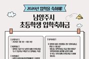 광장일보 주재영 기자 | 남양주시는 오는 3월부터 2026년 초등학교에 입학하는 아동의 새로운 출발을 응원하기 위해 입학축하금 지원 사업을 추진한다고 3일 밝혔다. 이번 사업은 초등학교 입학이라는 중요한 생애 전환기를 맞는 아동과 가정을 실질적으로 지원하기 위해 마련한 교육복지 정책의 일환으로 추진됐다. 지원금은 지역화폐로 지급해 교육지원과 동시에 지역 내 소비 촉진의 효과를 도모할 예정이다. 지원 대상은 입학일 기준 남양주시에 주민등록을 두고, 일반 초등학교 또는 대안교육기관에 2026학년도 1학년으로 최초 입학하는 학생이다. 학생 1인당 남양주사랑상품권(지역화폐카드) 10만 원이 지급될 예정이다. 신청은 3일부터 8월 31일까지 남양주시청 누리집 또는 거주지 읍면동 주민센터 방문을 통해 가능하다. 아동과 함께 주민등록이 등재된 부모 또는 사실상 양육자가 신청할 수 있다. 신청자는 본인 명의 휴대전화에 경기지역화폐 애플리케이션을 설치 후 남양주사랑상품권을 등록해야 하며, 지원금은 신청일이 속한 달의 다음 달 말일에 지급된다. 지급된 입학축하금은 지급일 기준으로 3년 이내 사용해야 한다. 사용 기한