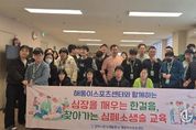 광장일보 주재영 기자 | 김해시도시개발공사 해동이국민체육센터는 지난 16일 관내 발달장애인 주간보호센터인 ‘와락 사회적협동조합’을 방문해 ‘기초 응급처치 및 심폐소생술(CPR) 교육’을 실시했다. 이번 교육은 생활 속 위급 상황 대처 능력을 키우고 생명 존중 문화를 확산하기 위해 마련됐다. 교육 내용으로는 ▲응급 상황 시 주변 도움 요청법 ▲정확한 119 신고 요령 ▲환자 의식 확인 방법 ▲심폐소생술(CPR) 기본 절차 ▲자동심장충격기(AED) 사용 방법 등 발달장애인 눈높이에 맞춘 핵심 필수 단계들로 구성됐다. 이날 교육은 이론 위주의 강의에서 벗어나, 위급 상황 발생 시 누구나 즉각적으로 대응할 수 있도록 장애인 맞춤 방식으로 운영되어 참여자들의 큰 호응을 얻었다. 특히 이번 프로그램은 센터 장애인 수영 지도자들의 재능기부로 진행되어 그 의미를 더했다. 장애인과 비장애인이 함께 안전한 지역사회를 만드는 데 힘을 보태며 사회적 가치를 실현하는 계기가 됐다는 평가를 받는다. 센터 관계자는 “이번 교육을 통해 장애인들이 응급 상황에서도 당황하지 않고 ‘4분의 기적’을 실천할 수 있는 자