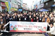 광장일보 주재영 기자 | 고창군이 12일 고창전통시장에서 ‘설 명절 맞이 전통시장 장보기 행사’를 개최했다. 이날 행사에는 고창군을 비롯해 고창소방서, 국민건강보험공단 고창출장소, 농협은행 고창군지부, 전북은행 고창지점, 고창군 소상공인연합회, 한국여성소비자연합회 고창지부 등 관내 주요 유관기관 및 지역 여성단체 관계자 50여 명이 참여해 대대적인 시장 이용 홍보 활동을 펼쳤다. 참석자들은 미리 준비한 고창사랑상품권과 온누리상품권을 사용하여 설 성수품을 직접 구입하며, 지속적인 물가 상승과 소비 심리 위축으로 어려움을 겪고 있는 상인들을 격려하고 현장의 애로사항을 청취했다. 특히 이번 행사는 해양수산부 지원사업인 ‘국내산 수산물 온누리상품권 환급행사’와 병행하여 시장을 찾은 군민들로부터 큰 호응을 얻었다. 군은 환급행사 기간 동안 군민들의 이용 편의를 극대화하기 위해 기존 장날에만 운행하던 전통시장 셔틀버스를 행사 기간 내내 매일 운행하며 전통시장 접근성을 대폭 강화했다. 이와 함께 전통시장 상인회에서는 최근 사회적 문제가 되고 있는 ‘노쇼 사기’ 피해 방지를 위한 캠페인을 자발적으로 추진하며, 상