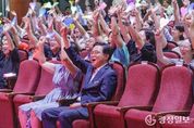광장일보 주리아 기자 | 진교훈 강서구청장은 17일 강서구민회관에서 열린 육아 고민 발산 토크쇼 ‘소통왕 말자 할매’에 참석해 양육자의 고민을 함께 나눴다. 강서구육아종합지원센터(센터장 조현정) 주관으로 열린 이날 행사는 육아로 쌓였던 스트레스를 해소하고 고민을 함께 공유하기 위해 마련됐다. 행사장에는 아기띠를 매고 온 부모부터 황혼육아(조부모가 손자녀를 돌봄)를 맡고 있는 노년층까지 양육자 400여 명이 참석했다. ‘소통왕 말자 할매’는 개그우먼 김영희가 현장에서 고민을 듣고 명쾌하게 해결책을 주는 공감 힐링 토크쇼다. 참석자들이 미리 적어낸 양육 고민에 대해 말자 할매가 함께 고민하고 소통하면서 해결책을 제시하는 참여형 토크쇼로 진행됐다. 실제 육아 경험을 통해 얻은 노하우를 바탕으로 양육자의 고민을 재치있게 해결했다. “아들이 공룡 흉내를 내는데 이를 보고 놀란 친구들이 아들 얼굴을 할퀸다”는 한 엄마의 고민에 말자 할매는 “공룡탈을 씌워라. 아들은 더 좋아하고 얼굴도 할퀼 일이 없을거다”라고 재치 있게 풀어냈다. 진 구청장도 “서른 살이 다 된 아들이
