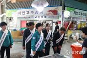 광장일보 주재영 기자 | 부여군의회는 민족 최대 명절인 추석을 앞두고 소상공인과의 상생을 도모하고 지역경제 활성화를 위해 30일 부여중앙시장을 방문하여 전통시장 이용 캠페인을 펼쳤다. 이날 캠페인에는 김영춘 의장을 비롯해 박순화 부의장, 장소미 산업건설위원장, 장성용 의원, 민병희 의원, 김기일 의원 등이 함께했다. 군의원들은 ‘전통시장 활성화’ 어깨띠를 두르고 명절 장보기에 나선 군민들에게 전통시장을 적극 이용해 줄 것을 당부했다. 또한 시장 상인들과 직접 소통하며 경기 침체로 인한 애로사항을 경청하고, 전통시장이 활력을 되찾을 수 있는 다양한 방안을 논의했다. 김영춘 의장은 “추석 명절은 가족과 이웃 간의 정을 나누는 소중한 시간인 만큼, 전통시장에서 따뜻한 인심을 느끼며 풍성한 명절을 준비하시길 바란다”며, “군의회도 지역경제 회복과 소상공인 지원을 위해 지속적으로 힘쓰겠다”고 강조했다.