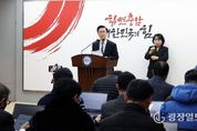 광장일보 나학천 기자 | 김태흠 충남도지사가 지역의 열망을 무참히 짓밟은 대전충남 행정통합특별법안 심사과정과 결과는 받아들일 수 없다는 입장을 밝혔다. 재정을 비롯해 중앙정부 권한의 전향적인 이양과 여야 공동특위 구성 등 요구가 받아들여지지 않으면 도민들과 함께 끝까지 싸워나가겠다는 뜻도 분명히 했다. 김 지사는 12일 도청 프레스센터에서 기자회견을 열고 “어제(11일) 국회 행정안전위원회 법안심사소위원회에서 진행된 특별법안 심사는 정부의 거수기 역할을 하는데 그쳤다”며 “저는 통합의 주체이자 입법의 대상인 충남의 도지사로서 결코 납득할 수 없다”고 강조했다. 이어 “기득권을 유지하려는 정부의 저항으로 재정이양을 담은 조항들이 모두 삭제됐고 선언적 지원규정만 남았다”며 “항구적인 재정과 권한 이양이 없는 법안으로는 행정통합의 본 취지를 살릴 수 없다”고 덧붙였다. 대한민국과 대전충남의 백년대계를 위한 행정통합이 대통령 말 한마디에 졸속 처리되는 상황에 대해서도 언급했다. 김 지사는 “가장 먼저 행정통합을 주장하고 특별법안을 제안한 도지사로서 그동안 여당과 소통하기 위해 지속 노력해왔다
