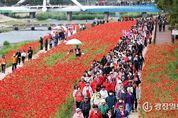 광장일보 이현나 기자 | 충북 괴산군은 다음 달 22일부터 사흘간 괴산유기농엑스포광장과 동진천변 일대에서 ‘2026 괴산빨간맛페스티벌’을 열고 상춘객의 발걸음을 유혹한다고 28일 밝혔다. ‘붉은 설렘, 괴산에서’를 내건 올해 축제는 괴산만의 트렌디한 감각을 전면에 세웠다. 축제의 백미는 동진천변에 펼쳐진 거대한 붉은 봄꽃 군락이다. 왕복 3.3킬로미터(km) 구간을 따라 양귀비 10만 본, 작약 16만 본, 꽃잔디 8만 본을 가득 심고 끝없는 붉은 꽃물결을 빚어냈다. 축제의 여운을 잇고자 빨간꽃 산책길과 포토존은 행사가 끝난 뒤에도 5월 31일까지 연장 운영한다. 무대와 볼거리도 화려하게 꾸렸다. 주무대에는 국민밴드 YB(윤도현밴드), 경서, 나비 등 전 세대를 아우르는 인기 가수들이 출연해 축제장의 열기를 더할 예정이다. 특히, 야간에 펼쳐지는 드론쇼는 지난해 1,200대에서 올해 1,400대로 규모를 확대했다. 충북 최대 규모로 괴산의 밤하늘을 화려하게 수놓으며 관람객들에게 압도적인 시각적 경험을 선사할 것으로 기대된다. 방문객축제장 곳곳은 전 세대가 어우러