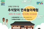 광장일보 주재영 기자 | 남해군은 추석 연휴 기관 남해유배문학관과 남해탈공연박물관에서 명절 맞이 민속놀이 체험을 진행한다고 밝혔다. 남해유배문학관에서는 기존의 박물관 체험프로그램에 더해 투호(投壺)놀이와 윷놀이를, 남해탈공연박물관에서는 팽이치기, 딱지치기, 사방치기 등 가족과 함께 즐길 수 있는 다양한 프로그램을 즐길 수 있다. 이번 추석 연휴(10.3.~10.9.)에는 추석 당일(10.6.)을 제외한 전 연휴 기간 동안 남해유배문학관, 남해탈공연박물관, 바래길작은미술관(남해군 남면 남면로1739번길 46), 뮤지엄남해(남해군 창선면 연곡로 13) 등 관내 문화시설들이 모두 정상운영된다. 보물섬시네마(남해군 남해읍 선소로 12)는 추석 당일에도 손님을 맞을 예정이다. 김지영 문화체육과장은 “고향에 방문하는 귀성객들이 가족, 친지들과 문화시설에서 민속놀이를 즐기며 행복한 한가위를 맞이하시길 바란다.”고 밝혔다.