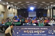 광장일보 주재영 기자 | 평택시는 평택 사회적경제‧마을공동체지원센터 주관으로 지난 10일 비전1동 대회의실에서 마을공동체 활동공유회×마을이야기쇼 ‘마을잇고, 마음잇다’를 성공적으로 개최했다. 이번 행사의 1부는 시의 다양한 마을공동체들의 이야기를 토크쇼 형식으로 풀어가는 마을이야기쇼로 진행했다. 평택 마을네트워크 담소 안은현 대표의 사회로 4개의 공동체 대표들의 올해 활동과 성과를 이야기하는 시간으로 각 사례의 이야기마다 감동과 함께 즐거움 그리고 어려움까지 활동가들이 서로의 마음을 나누는 시간이었다. 죽백1동의 들레생활공동체는 어르신들과의 소통이 어려웠지만 마을활동을 통해 모든 주민이 서로의 만남을 기다리는 시간으로 변화할 수 있었고, 청북옥길 15리 마을공동체는 이번 공동체 활동을 통해 8년 만에 처음으로 마을주민들이 함께 모여 잔치를 벌이고, 서로를 이해할 수 있었다는 올해 활동의 소감을 전했다. 2부 행사는 공식행사로 평택시장과 도의원 등의 내빈이 참석한 가운데 공동체 공연팀의 공연과 우수한 공동체들의 시상이 이어졌으며, 1년 동안의 공동체들의 활동을 영상으로 시청했다. 우수공동체로 들레생활공동체, 청북