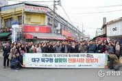 광장일보 주재영 기자 | 대구 북구청은 민족 고유 명절인 설을 앞두고 2월 11일 15시부터 동대구시장 및 동대구신시장 일원에서 구청장과 간부 공무원 등 50여 명이 참여하여 장보기 행사를 개최했다. 이번 행사는 온라인 쇼핑몰 이용 급증과 대형 유통업체 확산으로 어려움을 겪고 있는 전통시장에 활력을 불어넣고, 지역 상권 활성화에 동참하기 위해 마련됐다. 북구청은 매년 명절마다 꾸준히 장보기 행사를 이어오며 전통시장 살리기에 앞장서고 있다. 이날 장보기 행사에는 배광식 북구청장을 비롯한 구청 실·과장 이상 간부 공무원과 참여 희망 직원 등 50여 명이 자율적으로 참여해 전통시장 곳곳을 돌며 제수용품과 다양한 먹거리를 구매했다. 또한 각 상인과는 전통시장의 상황 등을 소통하고, 시장을 찾는 주민들에게는 온누리상품권 이용 안내와 시장 홍보 활동도 병행했다. 배광식 북구청장은 “설을 맞이하여 물가 상승과 경기침체로 어려움을 겪고 있는 전통시장에 활력을 불어넣고 상인들에게 조금이라도 도움이 되고자 장보기 행사를 마련했다”라며, “이번 행사를 계기로 더 많은 주민이 전통시장을 이용하고, 설 연휴 동안 가족들과 즐거운 명절