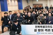 광장일보 주재영 기자 | 전북특별자치도가 공무 수행 중 적립된 공적 항공마일리지를 활용해 도내 복지시설에 생활필수품을 기부하는 ‘공적 마일리지 나눔’을 꾸준히 이어가고 있다. 도는 12일 설 명절을 앞두고 전북장애인복지관을 방문해 공적 항공마일리지를 활용해 마련한 생활필수품을 전달하고, 복지관 종사자와 이용 장애인들을 격려했다. 이날 나눔식에는 김관영 도지사를 비롯해 복지관 관계자와 이용자들이 함께해 따뜻한 분위기 속에서 전달식이 진행됐다. 이번 기부는 공무 수행 과정에서 적립된 항공마일리지 중 유효기간 만료로 소멸될 예정인 마일리지를 공익 목적으로 활용한 사례다. 2025년 말 소멸 예정 마일리지 보유자와 자발적으로 참여한 공무원 등 40여 명이 동참해 총 486,250마일리지가 사용됐다. 기부 물품은 항공사 마일리지몰을 통해 직접 구매했으며, 화장지, 라면, 치약·칫솔, 샴푸류, 물티슈 등 생활필수품 15종 121세트로 구성됐다. 복지시설 이용자들의 일상에 실질적인 도움이 되는 품목 위주로 마련됐다. 공적 항공마일리지 기부는 '공무원 보수 등의 업무지침'에 따른 공무원여비업무 처리기