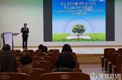광장일보 이현나 기자 | 홍천교육지원청은 9월 26일, 강원명진학교 해송홀에서 ‘홍천·양구 통합학교 교(원)감 공동연수’를 성황리에 개최했다. 이번 연수에는 홍천·양구 교(원)감 28여 명이 참석했으며, 통합교육 지원체제 강화를 위한 관리자 역량 함양과 장애공감 문화 확산을 목적으로 운영됐다. 연수는 △기타리스트 김지희의 ‘스토리텔링 장애공감 콘서트’ △법무법인 클래식 전수민 변호사의 ‘학교관리자를 위한 통합교육 지원 관련 법률의 이해와 실천’ 특강으로 진행됐으며, 참여자들은 통합교육의 의미와 현장 적용 방안을 함꼐 고민하는 시간을 가졌다. 홍천교육지원청은 이번 연수를 통해 학교 관리자의 통합교육 인식 제고와 네트워크 구축에 기여했으며, 앞으로도 통합교육 내실화를 위한 지원을 지속해 나갈 계획이다. 문선옥 교육장은 “이번 교육을 통해 관리자들이 통합교육의 가치를 다시금 인식하고, 학교 현장에서 이를 실천할 수 있는 구체적인 방법을 고민하는 계기가 되길 바란다”며, “앞으로도 모든 학생이 존중받는 학습 환경을 만들기 위해 학교 현장과 긴밀히 협력하고 적극 지원하겠다”고 말했다.