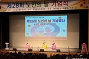 광장일보 주재영 기자 | 청양군은 30일 청양군 문화예술회관에서 10월 경로의 달을 맞아 대한노인회 청양군지회 주관으로 제29회 노인의 날 기념행사를 성대히 개최했다. 이날 행사에서는 노인복지 발전에 기여한 모범 어르신과 관계자 34명이 수상의 영예를 안았다. ▲국회의원 표창 4명 ▲도지사 표창 2명 ▲군수상 10명 ▲의장상 10명 ▲노인회 중앙회장상 2명 ▲노인회 연합회장상 1명 ▲청양군지회장상 5명 등이 전수됐다. 또한 청양에어로빅 동아리를 비롯한 6개 팀의 다채로운 축하 공연이 이어져 참석한 어르신들과 내빈들에게 즐거움과 감동을 선사했다. 김돈곤 군수는 “경로의 달을 맞아 함께 자리해주신 어르신들께 깊은 존경과 감사를 드린다”며 “앞으로도 어르신들이 행복하고 존경받는 지역사회를 만들기 위해 경로복지 증진에 최선을 다하겠다”고 밝혔다.