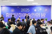 광장일보 주재영 기자 | (사)한국예술문화단체총연합회 함양지회는 지난 13일 오후 6시 관내 식당에서 ‘2025년 함양 문화예술인의 밤’을 개최했다. 이번 행사는 함양 지역 문화예술인들을 초청해, 한 해 동안의 문화예술 활동에 대한 노고를 격려하고, 함양 문화예술의 발전을 위한 의견을 수렴하는 자리로, 매년 개최되고 있다. 행사에는 진병영 함양군수와 김윤택 함양군의회 의장, 김재웅 경상남도 도의원, 조보현 경남예총회장 등 내빈과 함양예총 7개 지부 회원 200여 명이 참석했다. 행사는 가야금병창, 시 낭송 등 식전 공연을 시작으로 함양예술인상, 경남예술인상, 군수 표창패 시상, 축하공연, 만찬 등이 진행됐다. 이번 함양문화예술인상에는 김기완(국악), 여중년(사진작가), 남용호(문인), 강영선(연예예술인), 전용(미술), 최영수(연극), 변경숙(음악) 등 총 7명이 수상했다. 경남예술인상은 이창구 남계서원장이 수상했으며, 군수 표창에는 함양미술협회 김동관 회장이 선정됐다. 진병영 함양군수는 “한 해 동안 지역 문화예술인들의 헌신과 열정 덕분에 함양의 문화예술이 더욱 풍요로워졌
