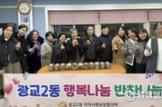 광장일보 나학천 기자 | 광교2동 지역사회보장협의체는 2025년 6월부터 12월까지 관내 독거노인 복지사각지대 대상자를 위한 '행복나눔 반찬나눔'사업을 운영하여 성공적으로 마무리했다. '행복나눔 반찬나눔'은 관내 어려운 이웃에게 정기적으로 직접 반찬을 전달하며 따뜻한 정을 나누는 복지사업으로, 지역사회보장협의체 위원을 비롯한 자원봉사자들이 반찬을 구매하여 독거노인들에게 직접 방문하여 전달하는 방식으로 운영됐다. 이번 사업은 매월 1회 진행되며 기초생활수급자 독거노인 등을 우선 선정해서 7개월동안 진행했고, 반찬 전달 시 안부 확인을 병행하는 정서적 돌봄으로 이웃사랑 나눔을 실천했다. 광교2동 지역사회보장협의체 이종금 위원장은 “단순히 반찬을 나누는 것을 넘어서 지역주민에게 이웃사랑 나눔을 실천했고 대상자들도 만족하여 의미있는 사업이었다”고 밝혔다. 또한, 박남숙 광교2동장은 “올 한해 지역사회보장협의체 위원님들과 봉사자 분들의 따뜻한 손길로 민·관이 함께하는 나눔 복지를 실현했다”고 말했다. 광교2동은 자원봉사자 모집과 반찬 기부 참여 등을 지속적으로 홍보하며, 내년에도 다양한 대상자들